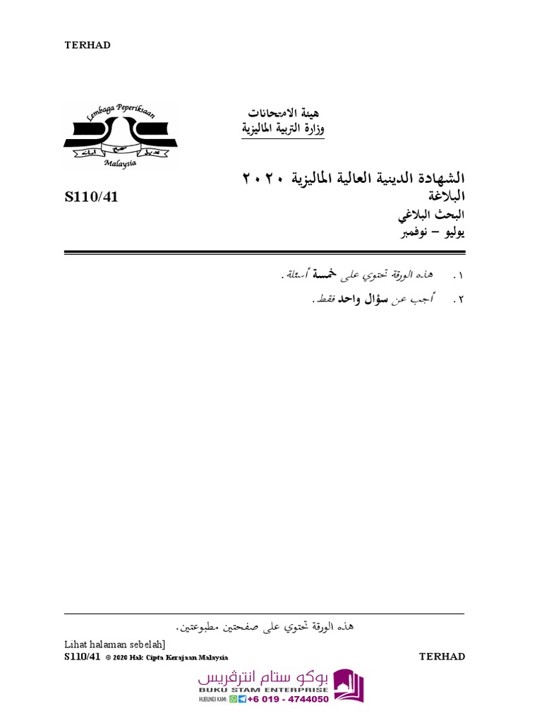 Kertas Soalan Kerja Kursus Bahas Stam 2020 S110 41 Balaghah Pdf